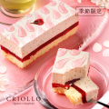 桜の花のシロップ漬け、桜の葉の塩漬けなどを使用した香り豊かなムースと、苺のプチプチとした食感を残した甘酸っぱいコンポート、しっとりとしたアーモンドスポンジを敷いた、優しい味わいの春のケーキです。 この季節だけの特別な味わいを、ぜひお楽しみください。