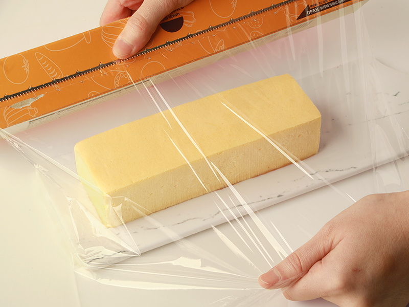 お皿の上のケーキにふんわりラップをかけて、冷蔵庫で所定の時間解凍してください。
