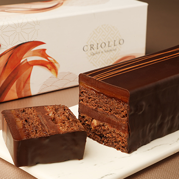 沖縄県宮古島産の塩をアクセントに使用し丁寧に炊いた自家製の塩キャラメルと、バニラが香るチョコレートガナッシュ、軽い食感のチョコレートスポンジを重ねて、チョコレートでコーティング。ピーカンナッツのプラリネと乾燥クレープを加え、食感も楽しめる一品に仕上げています。