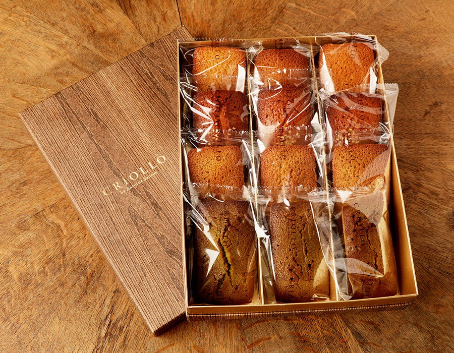 クリオロの人気焼き菓子、フィナンシェの詰め合わせ12個セットが登場。プレーン、キャラメル、アールグレイ、ピスタチオの4種類の味が楽しめます。