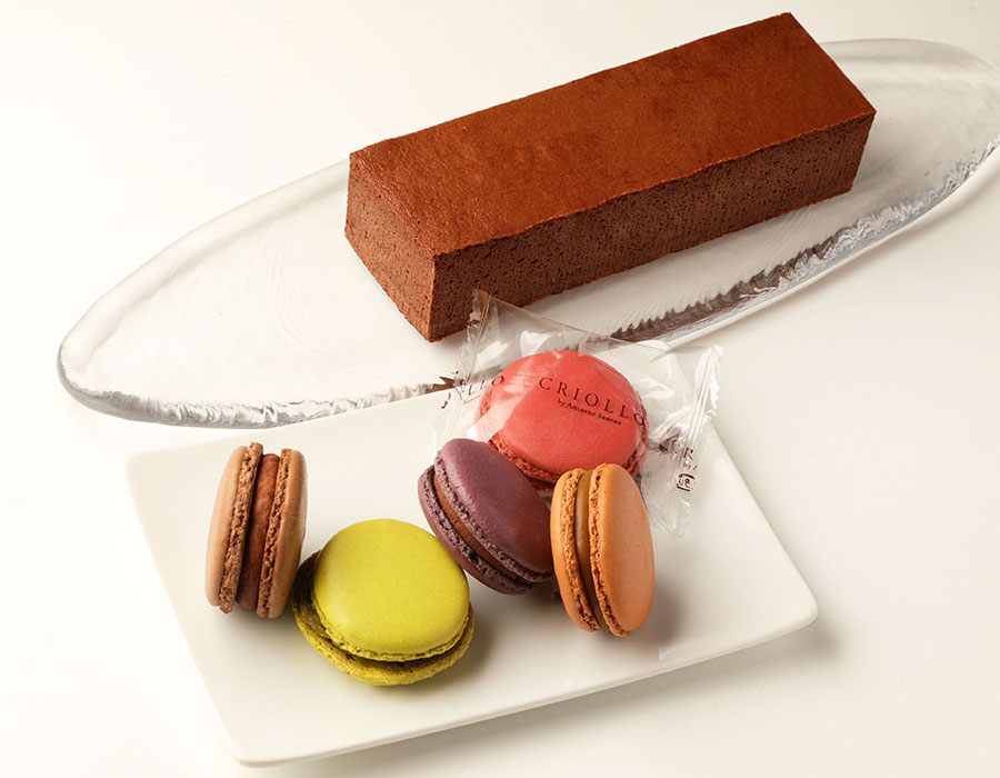 新作ガトーショコラ「クラシック・ヌーボー」と、ケーキのような満足感「マカロン5個セットA」のセットです。